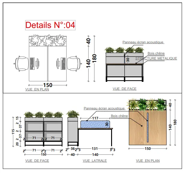 • Les Bureaux Manager et de Direction (comme le Bureau DG) sont conçus comme des cocons de concentration, intégrant des rangements astucieux et de la végétation intérieure.