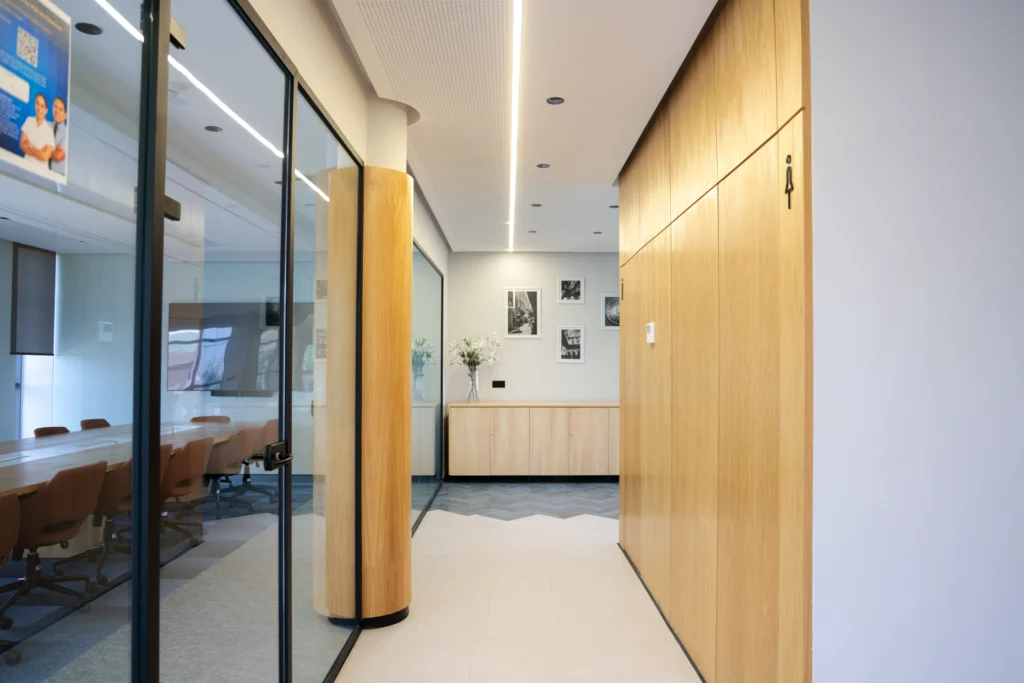 La réalisation concrétise le concept Corporate Moderne et l’identité de marque dès l’entrée.