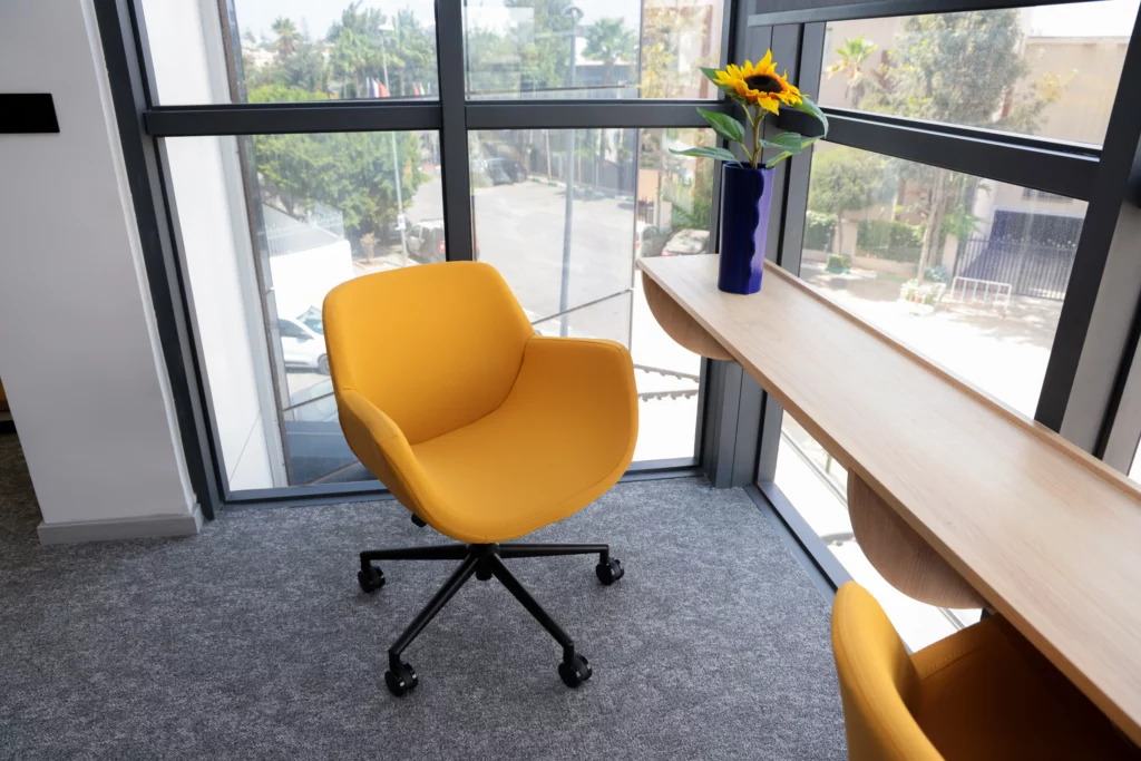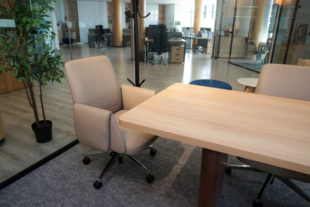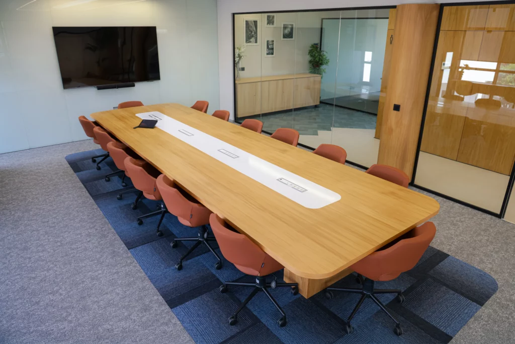 Les espaces de travail sont pensés pour la performance et le bien-être, traduisant le concept d’optimisation des espaces modulaires et de confort ergonomique :
