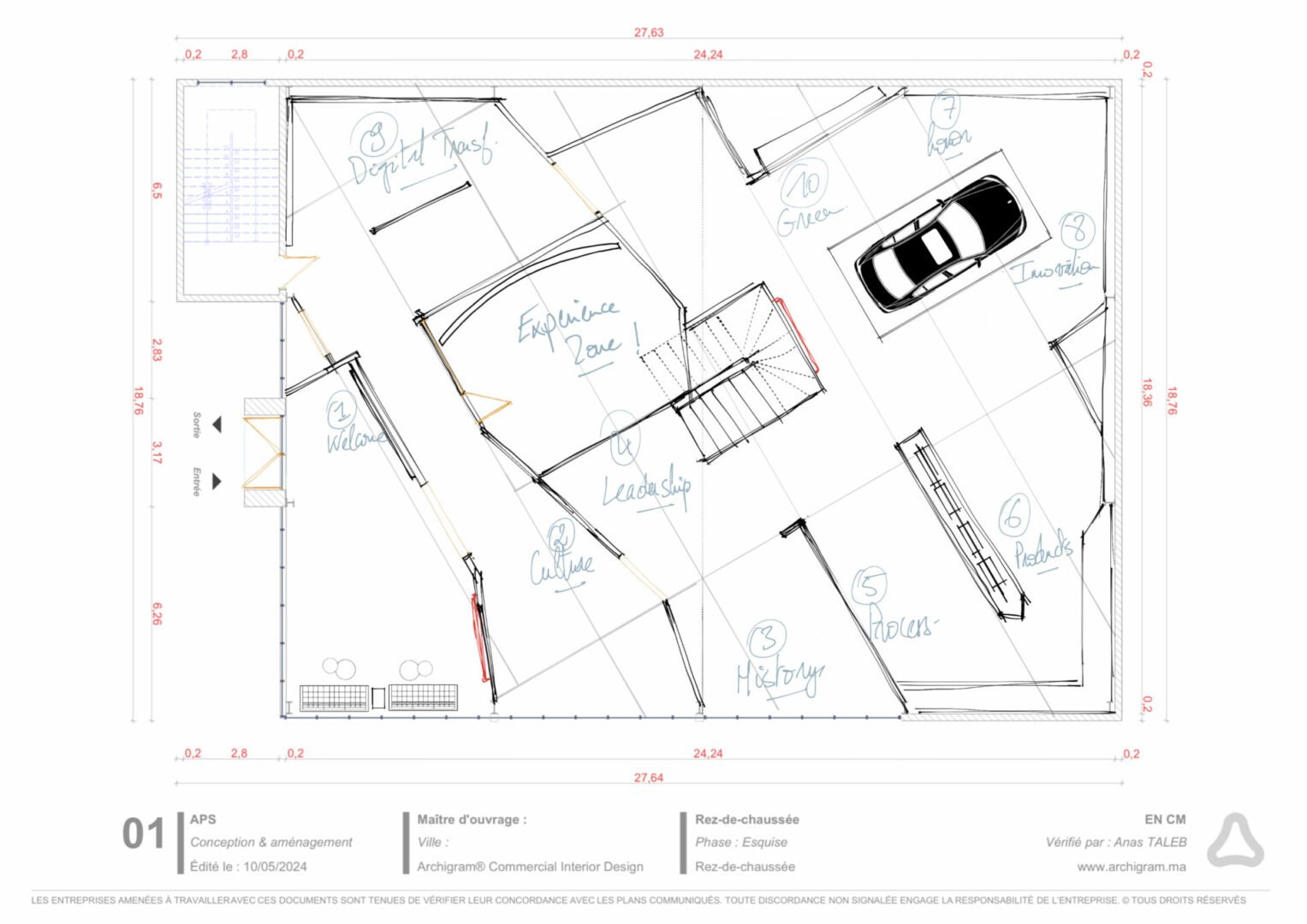 - Identité de marque : une esthétique sobre et futuriste, combinant matériaux naturels, teintes neutres et éclairage scénographique.