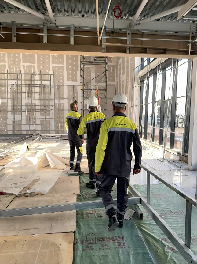 Après la phase de conception, nous avons entrepris la mise en œuvre du projet avec une attention rigoureuse portée à chaque détail afin de garantir un résultat fidèle à notre vision initiale. Cette étape a mobilisé nos équipes autour d’un objectif commun : transformer un espace brut en un showroom moderne, fonctionnel et emblématique de CITIC DICASTAL.